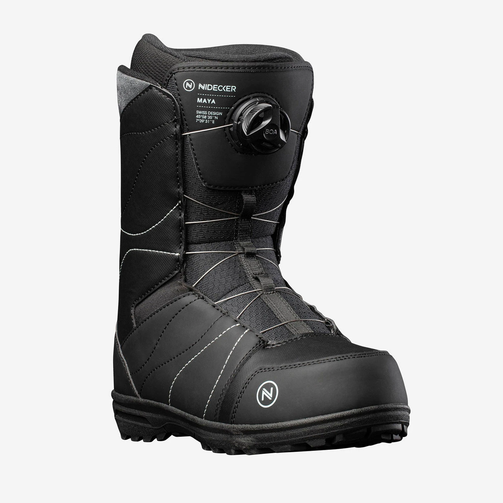 La premiĂšre piĂšce d’Ă©quipement que tout nouveau snowboardeur devrait acheter est une paire de boots confortables – et les Maya devraient figurer en haut de votre liste. Si vos boots vous vont bien, vous profiterez dix fois plus de votre journĂ©e. Câest pourquoi nous avons basĂ© notre modĂšle pour femmes, dâentrĂ©e de gamme, sur la mĂȘme forme FlowFit que le reste de notre gamme. La forme est conçue pour soutenir parfaitement votre pied et pour fonctionner de maniĂšre harmonieuse avec les fixations Ă deux sangles ou les fixations Ă entrĂ©e rapide de Flow. Le flex facile Ă vivre de la Maya semble naturel dĂšs la premiĂšre utilisation et est plus indulgent lorsque vous faites une erreur en enchainant les virages. Au fur et Ă mesure que vous vous amĂ©liorez, les vibrations plus douces vous permettront Ă©galement d’essayer plus facilement les butters, les carves de style surf et de dĂ©velopper votre propre style de ride. Le laçage Boa Ă zone unique est contrĂŽlĂ© via le dernier Coiler H4 qui est ultra rĂ©sistant et trĂšs facile Ă utiliser, mĂȘme avec des gants. Avec sa semelle extĂ©rieure adhĂ©rente en caoutchouc et ses matĂ©riaux rĂ©sistants, il n’y a rien d’autre dont vous aurez besoin pour commencer votre aventure en snowboard.