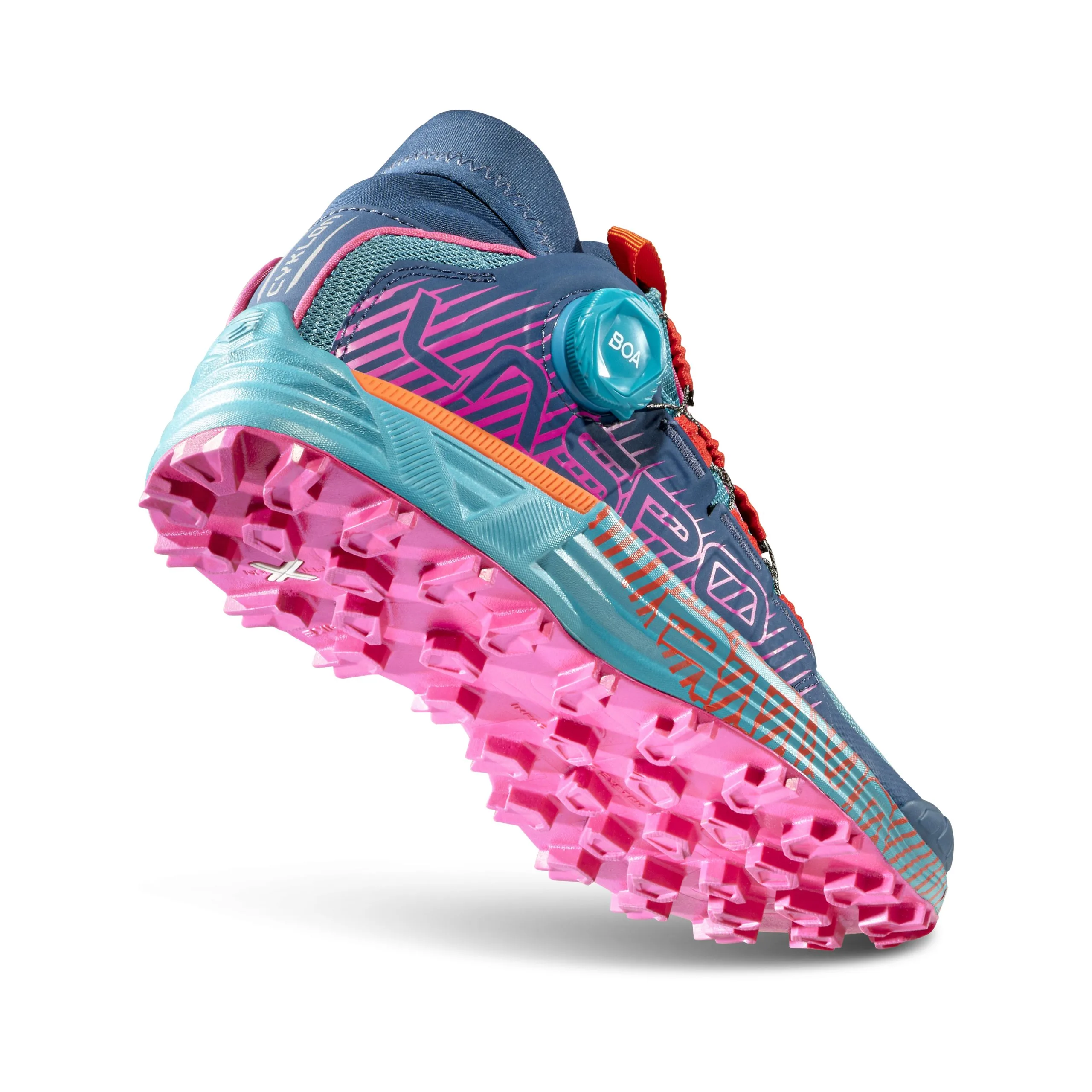 Chaussure de performance idéale pour les skyraces et les courses tout-terrains sur des terrains techniques de moyenne distance. Fruit de la recherche et du développement entre La Sportiva et BOA® Fit System, voici un produit qui garantit stabilité et précision, le tout dans une enveloppe parfaite grâce au nouveau système de fermeture Dynamic Cage™ avec Boa Fit intégré, qui fonctionne en synergie avec trois éléments différents de l’empeigne permettant un bandage et une stabilité du pied parfaits, pour une descente sûre et précise. Le cœur du système de laçage est le Dynamic Flap™ intérieur qui enveloppe la chaussure et permet un ajustement dynamique de la tension en agissant directement sur le BOA® Fit System avec un mouvement d’une seule main. L’embout protecteur en TPU et le panneau latéral multicouche et thermo-adhésif offrent encore plus de structure et de protection contre les chocs. La semelle mud-ground est idéale pour un usage sur terrains mous et boueux, grâce à un composé La Sportiva FriXion® White ultra adhérent et la possibilité d’intégrer des clous AT Grip Spike en cas d’usage sur terrain glacé.L’inter-semelle en EVA à double densité avec insert stabilisateur contribue à la stabilité globale de la chaussure et contient le poids. Cyklon: float like a butterfly, run like the wind.