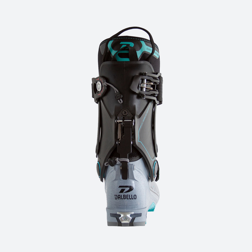 Les performances supérieures de la Quantum EVO W dotée d’une largeur métatarse de 99 mm reposent sur la construction innovante en deux parties de la coque et de la tige, associée à un chaussant anatomique. Cette construction est constituée d’une coque extérieure extrêmement solide et rigide, mais aussi d’une semelle sur toute la longueur offrant une grande liberté de mouvement en montée. Le polyamide renforcé de carbone augmente la rigidité de la construction. L’ouverture centrale optimisée munie d’une guêtre extensible permet néanmoins d’enfiler et de retirer aisément la chaussure. La montée est facilitée par son faible poids et par sa tige EVO Dual Link en deux parties offrant une amplitude de mouvement de 65°. Une fois la montée achevée, la tige rehaussée et munie d’un rembourrage au tibia peut être facilement verrouillée à l’aide du crochet Hike & Ride et du Power Strap velcro, permettant ainsi un remarquable ajustement et une transmission des appuis optimale. En outre, la large bande velcro est dotée d’une fonction de mémoire et d’attaches Quick Release, et ne doit être ajustée qu’une seule fois. Grâce à l’extrême rigidité du matériau de la coque, toutes les impulsions du skieur sont transmises au ski sans déperdition d’énergie, pour des performances optimales et un contrôle des skis maximal. Le chausson ID Touring multicouche doté de rembourrages AUTOFIT est particulièrement léger et garantit un parfait maintien du talon, une température agréable et un confort supérieur. La technologie MyFit permet d’adapter le Quantum EVO W à la forme du pied. La semelle Vibram profilée (Rocker) avec différents niveaux de dureté offre une bonne adhérence dans la neige et pendant l’escalade, ainsi qu’une transmission des appuis toute en souplesse sur les fixations et le ski.