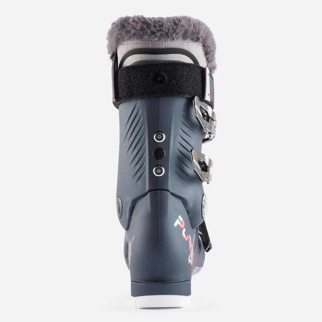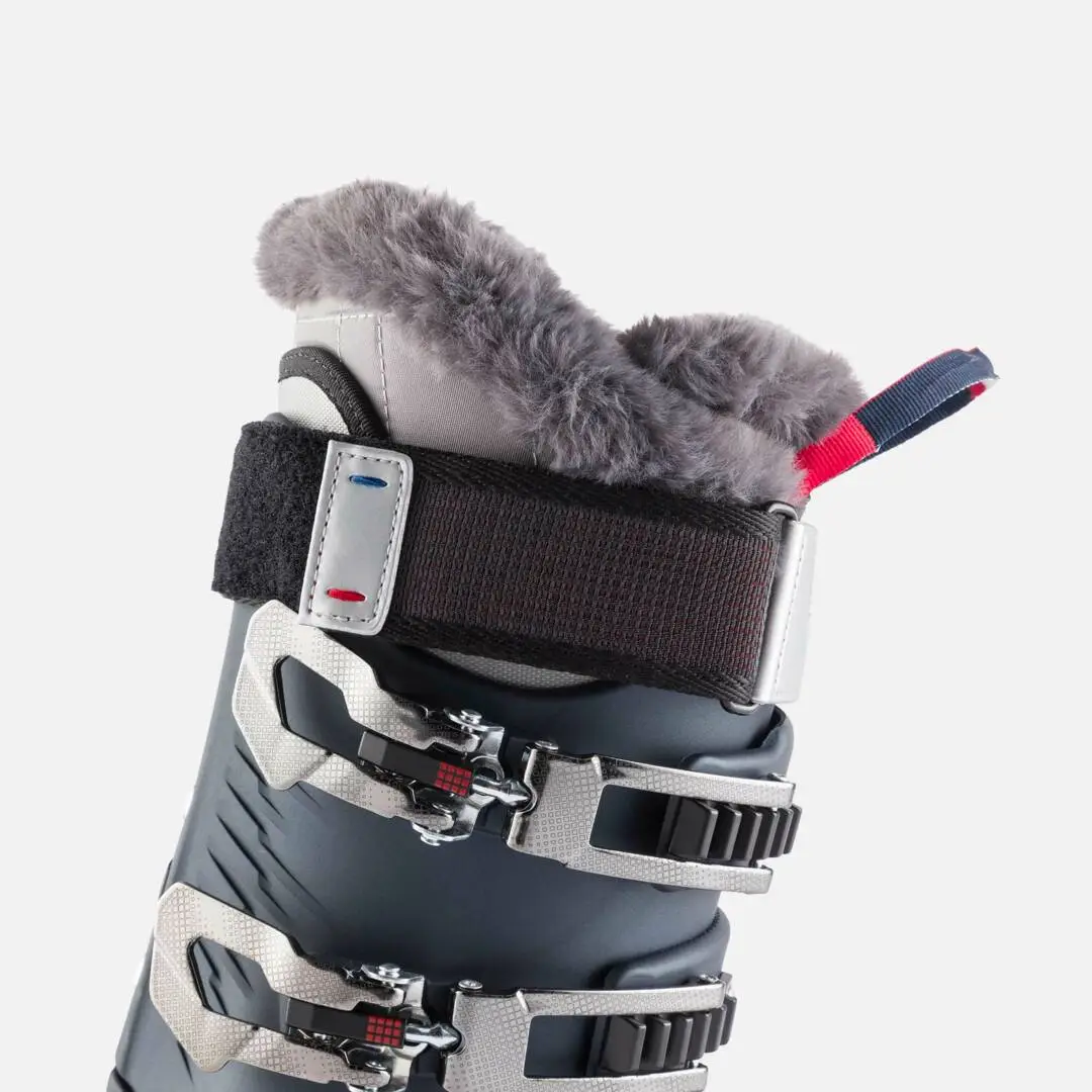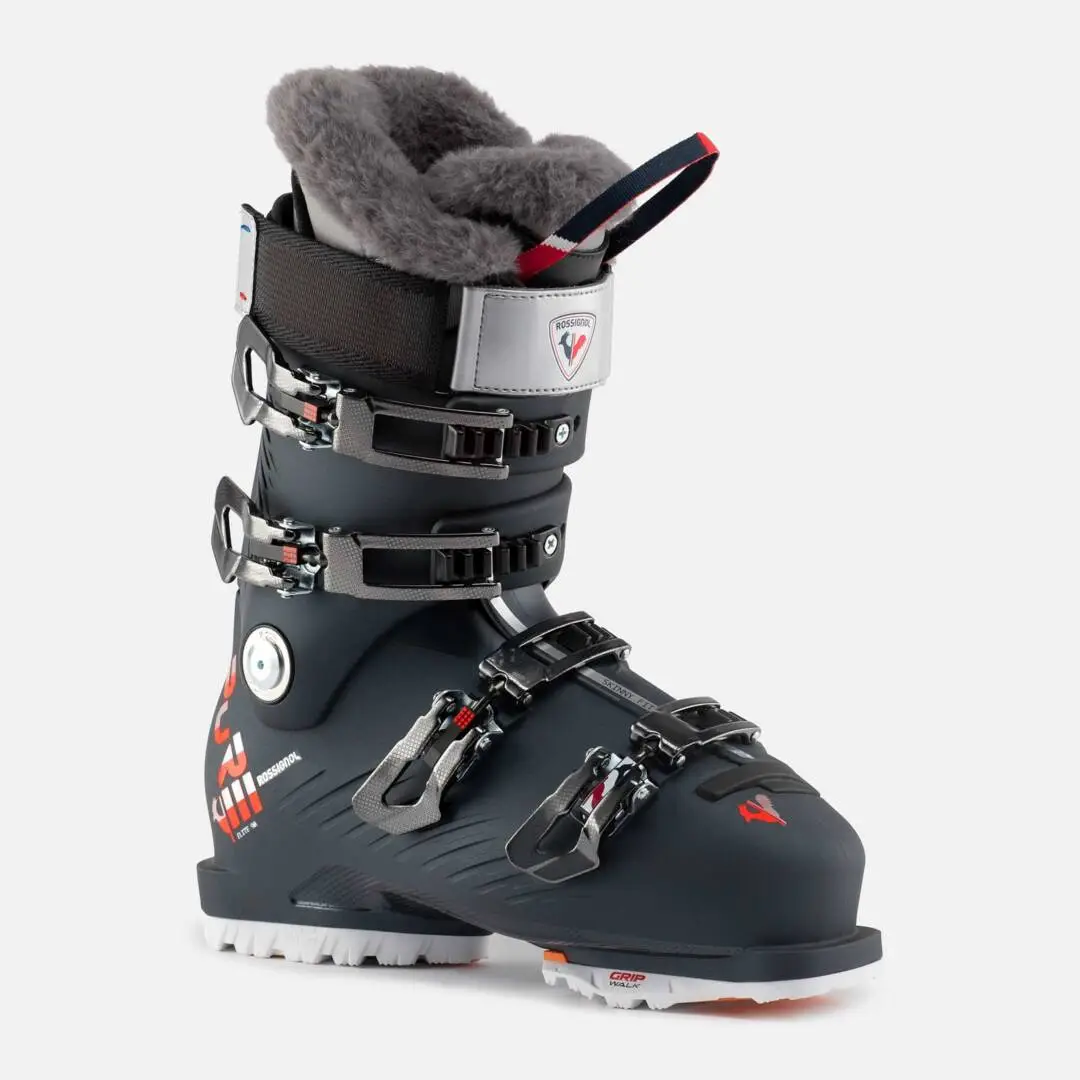 Chaussure hautes performances, la Pure Elite 90 pour femme offre un confort de tous les instants et un flex tolérant. Une nouvelle forme interne très moderne et anatomique. Une largeur de chaussure – Skinny Fit – au plus près du pied pour un maximum de tenue et de performance. Comme toutes les chaussures de la gamme PURE, les colliers des chaussures et les chaussons sont parfaitement adaptés à la morphologie féminine. La technologie du Generative design permet d’obtenir un juste poids grâce à des épaisseurs de plastiques fines. La technologie Dual Core permet de renforcer la rigidité en flexion et en torsion de la coque. Les transferts d’énergie sont parfaits ainsi que le contrôle dans les courbes à grande vitesse grâce aux possibilités de réglages des systèmes intégrés – flex, canting vous pouvez personnaliser la chaussure à votre style de ski. L’isolation en laine mérinos accroît la chaleur du chausson pour que vous n’ayez plus qu’à vous concentrer sur votre ski. Passez à l’expérience supérieure avec la Pure Elite 90. Autre point clé l’isolation thermique – la nouvelle construction du chausson au niveau des orteils est sans couture associée à la laine de mérinos vous garantit de la chaleur toute la journée. Talonnettes Gripwalk ® pour une marche plus facile.
