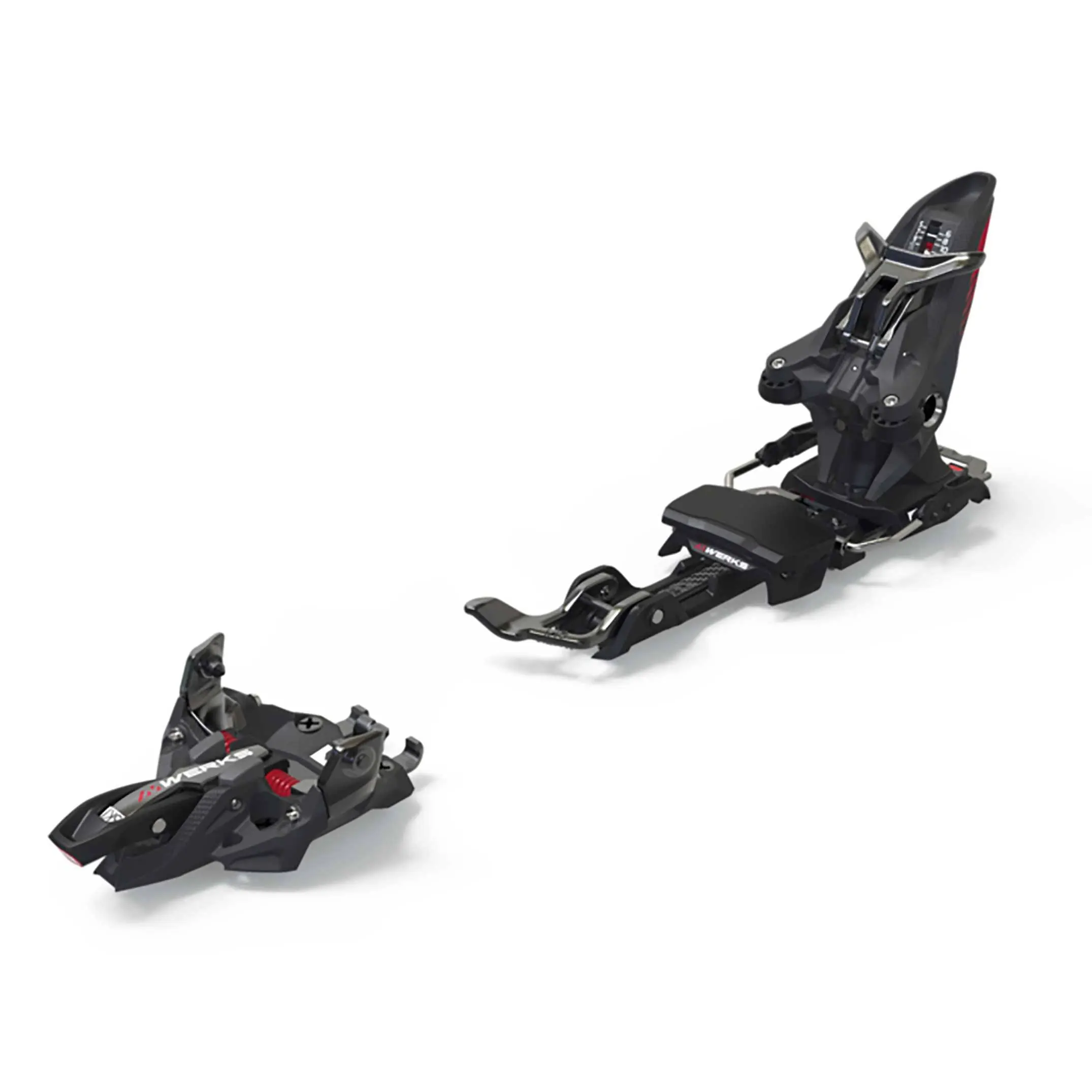 Cette fixation Low Tech hautes performances à la pointe du progrès développée par MARKER est munie d’un DIN s’élevant jusqu’à 12. La Kingpin M-Werks 12 équipée d’une talonnière renforcée de carbone ne pèse que 620 g frein compris, et grâce à ses caractéristiques techniques telles que les transmetteurs de puissance XXL ou la cale de montée ergonomique, elle offre des performances maximales tant en montée qu’en descente. La section frontale très rigide dotée d’une butée avant ISI est également renforcée de carbone et améliore le confort de chaussage. Grâce à sa large surface d’appui munie d’un arrêt intégré, la chaussure s’insère automatiquement dans la bonne position et avec la bonne orientation. Les inserts peuvent ensuite être bloqués en exerçant une pression minimale grâce à la cinématique optimisée du levier de blocage.